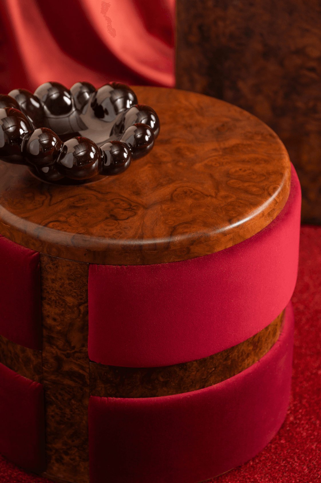 Siedzisko a może stolik? Z Royal Hall sam wybierasz czego potrzebujesz w danym momencie. Czeczot orzecha skomponowany z burgundowym obiciem tapicerskim nada wnętrzu niesamowitego prestiżu.Potrzebujesz większego kolorytu? Wybierz swoje obicie.